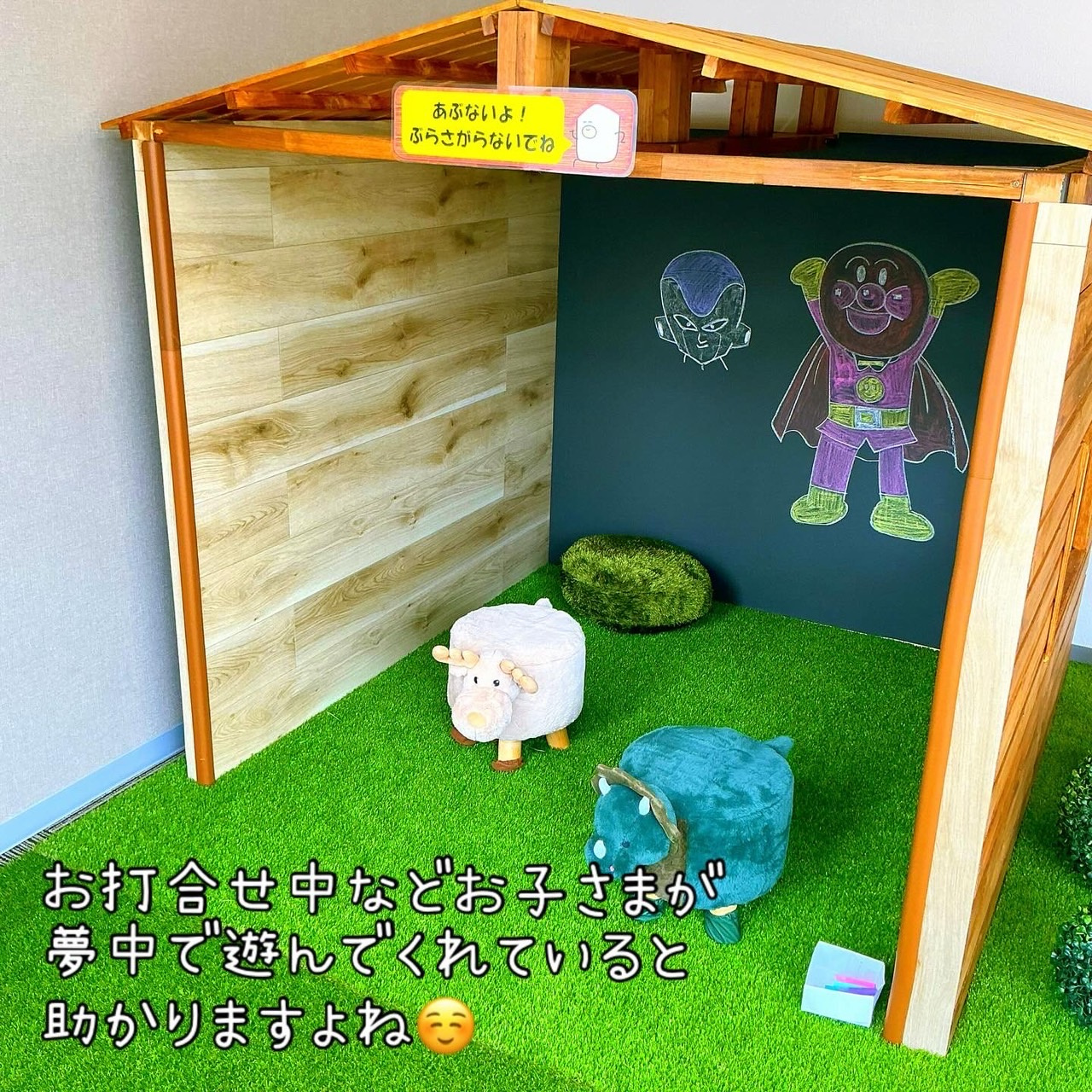 真剣にらくがきしてみたこんにちは!川瀬です。キッズルームがいい感じに出来上がってきてます。人工芝を敷いているから、はだしで歩くと気持ちいい~なんといっても従業員が一生懸命作ってくれた小屋!!...